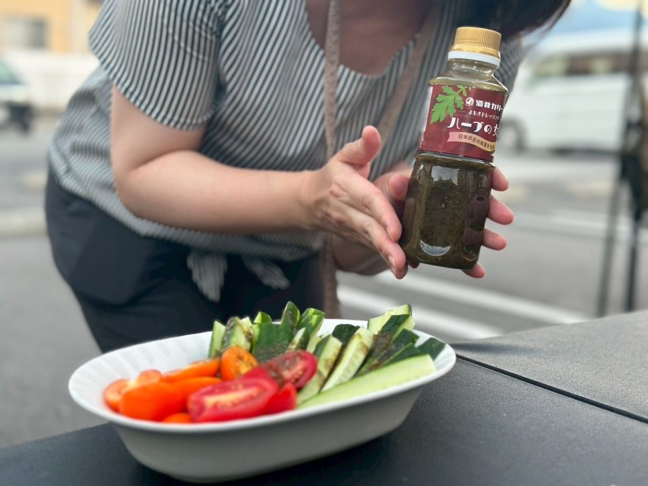 お肉以外にも、定番の焼肉のタレから、塩レモン・ネギ塩だれ・大根おろしポン酢といった和風の薬味系までばっちり準備。どの味がベストマッチかを探せるようにさまざま取り揃えました。彩りを添える野菜も並べ、一気にBBQモード全開に♪