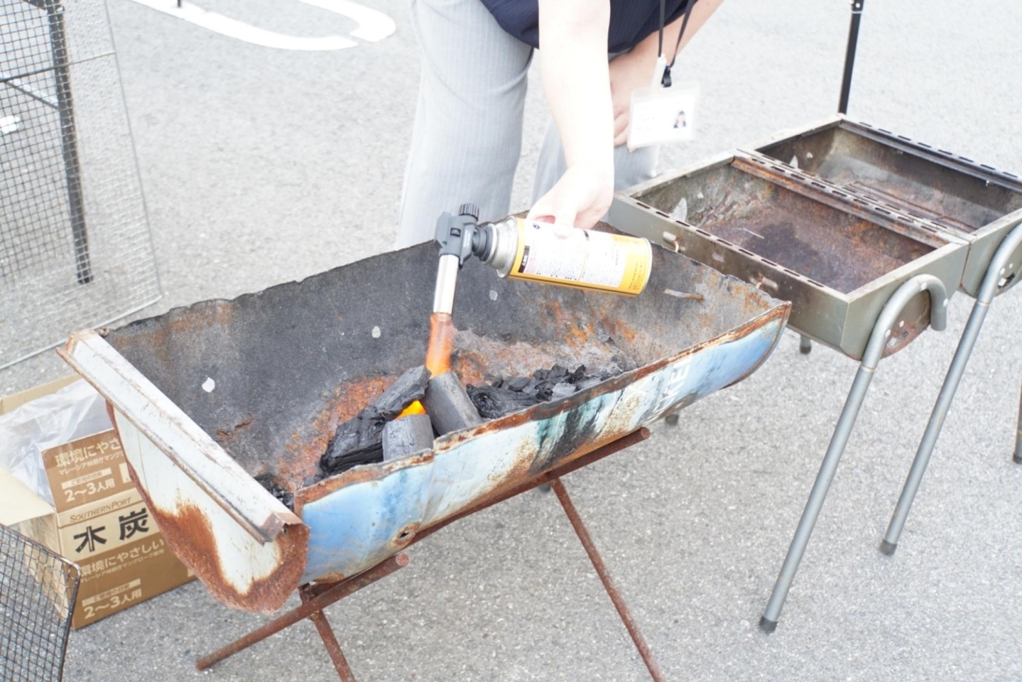 今回の焼き場所は、まいぷれ編集部がある株式会社ニューウェイブの駐車場。