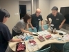 パチパチと火花を散らす炭の音に「おお~っ!」と歓声があがります。火おこし係が汗をかきつつ炭を育てる横で、他のメンバーはタレや薬味、野菜の下ごしらえへ。