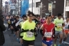 八坂通りで、先頭のランナーたちが来はじめてから大集団になり、その後は道路一杯になって更に大集団になります。八坂通りは最初の上り坂で、試練の坂です。まだスタートから1kmちょっとの地点なので、皆さん元気です。