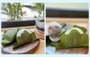 外郎粽を笹の葉で巻いています。