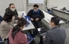 熱心に、Googleアプリの使い方について講義を受ける小学校中学校の先生たち。