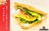 おかだ屋名物のピリ辛醤油ダレで味付けした牛タンを甘みのある食パンでサンドしました。女性にも食べやすいサイズです。