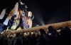夕暮れから夜へと日が落ちる中、川西地区の太鼓台10台が集結。